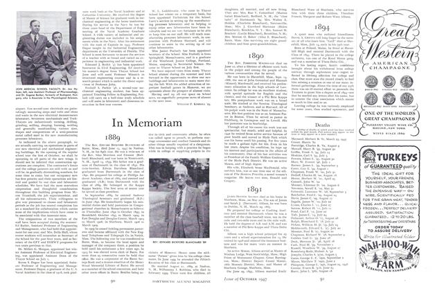 His modesty led him to make light of his achievements, and he early advised the secretary of his class that his reports might be stereotyped, "the same as last year." But he was always warmly interested to know of his classmates' welfare, and always attended reunions when it was possible for him.