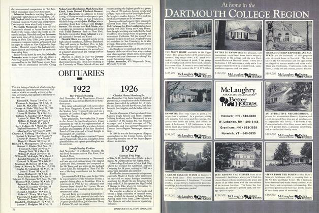 (This is a listing of deaths of which word hasbeen received since the last issue. Full notices,which are usually written by the class secretaries,may appear in this issue or a later one.)