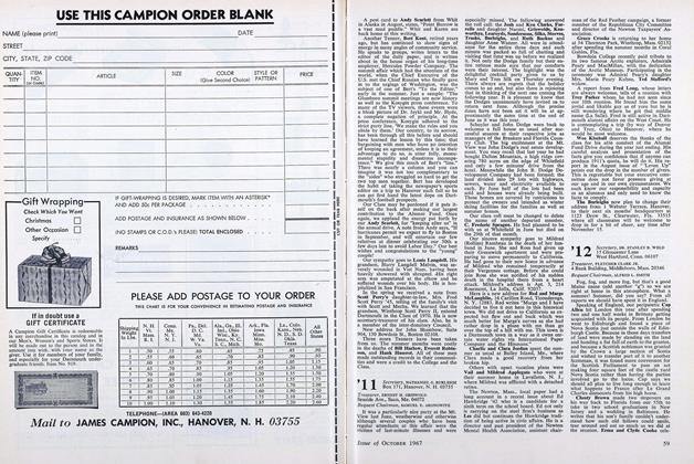 Cap Hedges in faraway Cedar Rapids is still upholding the glory of 1911, as is testified to by a clipping from a Cedar Rapids paper. Funny how Spunk Troy always happens around on these occasions : "Perfect September weather, cool and bright, make outdoor activities the order for Labor Day recreation in Cedar Rapids society. Picnics and motor trips into the country are popular with many, while others are participating in the golf contests at the Country clubs. At the Cedar Rapids Country Club, open house is being held during the day, with a special dinner dance as the attraction of the evening. There are many dinner parties, the largest of which is that given by Mr. and Mrs. Horace Hedges in honor of their Labor Day guests, Mr. and Mrs. Warren Agry of Evanston, Ill., Mr. and Mrs. Edwin R. Keeler of Winnetka, HI., Mr. and Mrs. R. T. R. Hastings of Highland Park, Ill., Mac Rollins and his mother of Chicago, and John J. Troy of Los Angeles The guests motored out from Chicago to attend a house party being given by Mr. and Mrs Hedges in their home at 825 Seventeenth St. The men of the party were graduated from Dartmouth in the class of 1911 which was Mr Hedges' class."