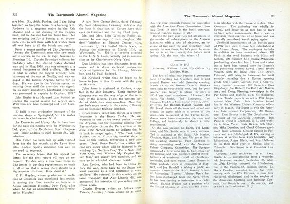 Somewhere around the middle of August, Howard Stockwell's third son arrived. Being the third, Stocky overlooked mention of the date but did state that the youngster is christened Frederick Franklin Stockwell, 2d. Which makes two Seventeeners,—Stocky and Paul Soule—who can return to the BIG FIFTH with something worth while in the way of a family.