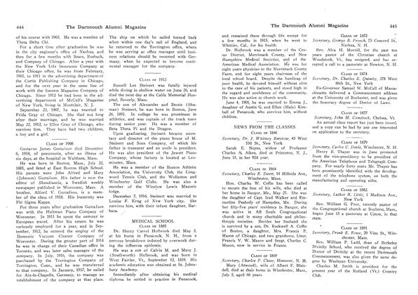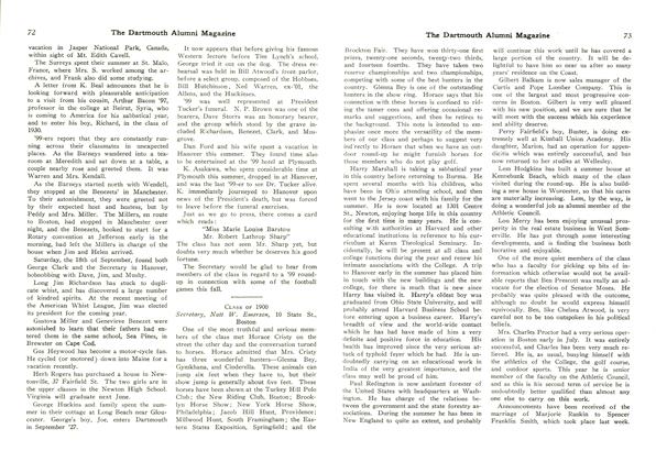Professor Charles Albert Proctor of Hanover, N. H., wishes to announce through these columns that his oldest son, Charles N. Proctor, has succeeded him as the golf champion of the state of New Hampshire. Professor Proctor in his letter expresses the proper amount of enthusiasm that this title still remains in the family, yet regrets that the older generation is passing and the new one taking its place. This means more to young Charlie than the state championship, because he enters college this fall and will be able to compete on the Dartmouth golf team if he keeps up his present rate. It has also been stated that he is undoubtedly one of the best if not the best ski jumper in Hanover, so that the conleadership elusion seems to be quite reasonable that the younger generation will rival if not surpass the older generation in athletic accomplishments. Professor Proctor adds in conclusion that while he will not be in the golf lime-light in the future so much as he has in the past, he is open to challenge for a match with any member of the class on any course at any time for any inducement. It is only fair to say that one cannot be both a golf architect and an exhibition player.