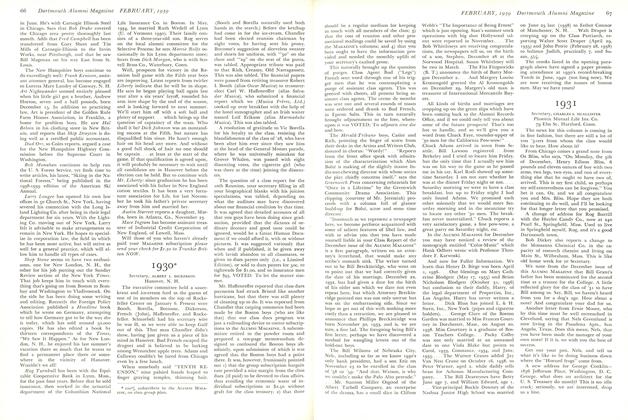Vachel Lindsay came to Dartmouth on January 10, under the auspices of the Arts, for a reading of his poetry. He visited Hanover before in 1915. His reception committee claims that they went to the train with a photograph to identify him, and stopped three traveling salesmen and a baggage man before they found the poet. Those who met him found what Hanoverians call a hell-of-a-good-guy. His hearers were divided between those who thought his reading was marvelous and those who thought it was exaggerated. But "The Congo" had its inevitable appeal to all. He signed the autograph book of the Arts with some doggerel and a daisy, and left behind him the rare reputation of a poet with a pleasant sense of humor and an apparent enjoyment in being agreeable. Boom-lay-boom.