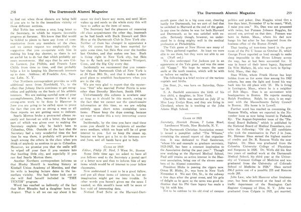 A recent record of various Dartmouth alumni associations throughout the U. S. reveals Emory Corbin as secretary of the Dartmouth Club of New Britain, Conn.; Cory Litchard as president of the Dartmouth Club of Springfield, Mass.; Don Mix as secretary of the Dartmouth Club of Worcester, Mass.; and Dewey Gruenhagen as secretary of the Dartmouth Lunch Club of St. Paul, Minn.