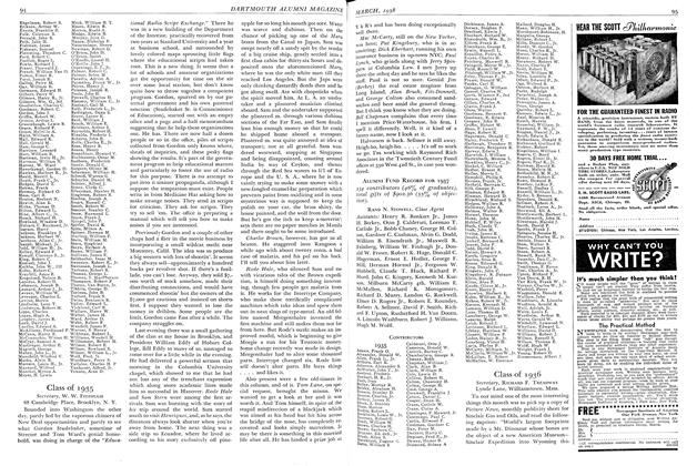The class treasurer says that even collecting dues has some recompense, in that occasionally he gets a few insolent remarks which at least help to pass the time away. A few examples—Wee Kimball: "All classtreasurers should be strung up, but ofcourse that should not be retroactive"; Art Jackson: "Let's pull them all at once"; Jake Lovejoy: "Before the sheriff comesto put an attachment on my meagre checking account, I am going to see that you getmy class dues, so here's my check for $15." Demon says, however, that if he were to have his choice between remarks and $15 checks, he much prefersythe latter.