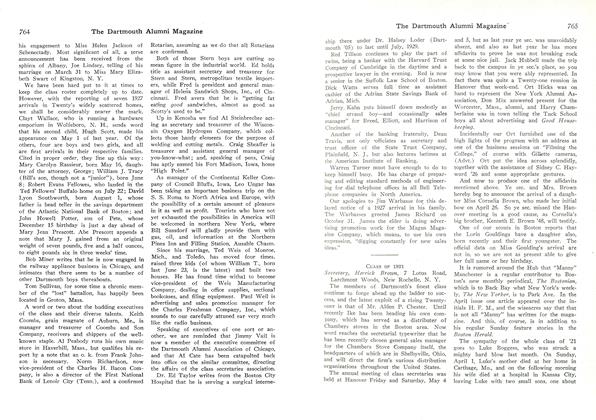 And now, ere we part, may be remind you that class dues are due this month, that as usual they include a year's subscription to the ALUMNI MAGAZINE, and that we are adhering to our policy of the past few years, of aiming to get our class news to you through the columns of the MAGAZINE. We'll have something for you to read each month, and we'd sure like to feel that you all were reading it.