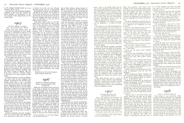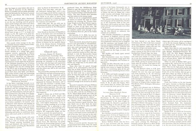 Fred and Mrs. Chase in England Bill and Mrs. Blatner in Bermuda in the spring Mrs. Conley at Cape Cod for the summer, with Walter expecting to join her the latter part of the summer. .... Art and Marie McClary at New Castle, N. H The Lafayette Chamberlins at Yarmouth on the Cape The Falls at Craigville, Cape Cod The Nourses at Hanover, and calling on Parkinson, Hill, and McClary The Putnams in Maine.