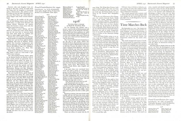 Remember when you will be reading these notes, Boston Balmacaan will be in full swing with its parties, so get in touch with us if you visit New England. We promise to stage a party for any visiting fireman. Also remember hard-working Pete Cleaves and his class agents, who will be working hard on the Alumni Fund as you read these notes. Help him, won't you.