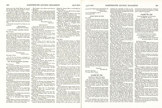 Red Winslow, who discovered with our help that Tom Fitzpatrick lived near him in Needham, discloses his neighbor works in Marlboro, and that he has two children. Incidentally Red had a fond hope that this scribe could tabulate the class from a post card poll similar to one taken by Yale '24, to determine the average income by business and profession. This column gently put him off by suggesting that he probably made more in insurance than we did in advertising anyway, so why bother.