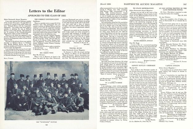 Late in August my family and I found ourselves at an Indian Reservation on the west shore of Lake St. John, P. Q., known as Point Bleue. The only car standing beside the Robertson Fishing Camp had a New Hampshire license and, presuming that its owner spoke English, I talked to him, rather than to the natives. It developed that he was Gerald F. Cobleigh '15, who was spending a few days there prior to going into the bush for a month with an Indian guide who spoke no English.