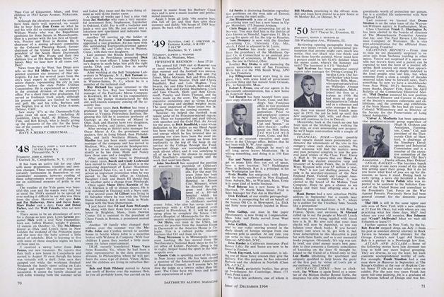 Herb Butz is still with Buchen Adv. Cos., Chicago- Ed Casey is teacher-coach, Barre, Vt Sid Lansburgh is an economist with the OPM in Wash. John Latchis manages the Latchis Hotel, Brattleboro, Vt. Dick Rush is a Littaner Fellow, Harvard Grad. Sch. of Public Adm.; George Snyder's an asst. buyer at Macy's. Loring Stinson is a salesman for Porter Screen Cos., Burlington, Vt. Dr. Brad Varnum's at Boston City Hosp. Dr. Dick Woods is at L. I. College Hosp. Quincy Fortier teaches at the Inst, of Anatomy, U. of Minn. Bob King is working on defense contracts in Philadelphia.