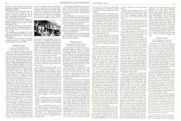 The Class is now restricted to two-thirds of a column of alumni notes. Brevity in future issues is thus not to be attributed to the theory that the class is inactive, but to the ukase of the economical and ada- mant-hearted editor.