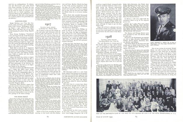 Lt. Bill Hoge, one of the two 1927 men who attended the Navy Indoctrination School at Dartmouth, is now stationed at the U. S. Naval Air Station, Patuxent River, Md. Bill is working in the Security Office. Dick Hood is still teaching at the Waltham High School in Waltham, Mass. Leon Loeb is director of the Industrial Design Division of Kent Studio Service, Inc., in New York City.