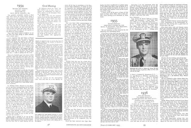 I very much regret to have to record the deaths of three more classmates. These have occurred at intervals over the past several months, but news of them has only recently come to this desk. Capt. Percy G. Stone, formerly a member of our class, though he got his degree from Stanford, was killed in action in the European Theatre of War on October 16, 1944. At the time of his death he was a captain of Field Artillery. Lt. Ben Hill was killed in action while serving aboard a warship in the Pacific about the middle of January, so that the likelihood is that he was engaged in the operations connected with the landings on Luzon, although no further details are yet available. The third death is that of Alex Young, who was killed in a hunting accident in Panama, November 4, 1944. Here also I lack further details. Brief notices about all these men will be found in the In Memoriam section this month and next. It will be sad news to all classmates, who will wish, I am sure, to join me in an official expression of our corporate regret that the fortunes of war should have taken this direction.