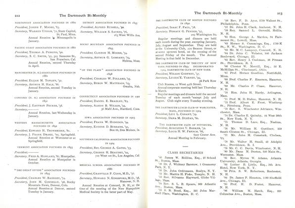 Francis J. Cos grove, 25 Fairmount Street, Marlboro, Mass.; Reginald B. Miner, 21 Chestnut Street Wellesley Hills 82, Mass.; Daniel B. Ruggles fr. Boston Herald-Traveler Corp., 80 Mason Street Boston; Walter T. Lundegren, 120 Elm Street, Marblehead, Mass.; Donald F. Sa-wyer, Kidder, Peabody & Cos., 105 Newbury Street, Boston 16; Gordon S. Stanley, New England Tel. & Tel. Cos., 50 Oliver Street, Boston; William H. Perry, 196 Broadway, Cambridge, Mass.; Charles N. Stiles, 148 State Street, Boston; Harold D. Geilich, 29 Rangeley Road, Brookline. Mass.; David C. Bowen, East Pepperell, Mass.; Otis C. Severance, Ogontz Jr. College, Ogontz School P. 0., Penn.; Leon W.Bateman, 10 Winthrop Road, Lexington 73, Mass.; Russell Bailey, 33 Hillcrest Avenue, Melrose 76, Mass.; Lewis J. Kerlin, 2 Springdale Road, Larchmont, N. Y,; Harland F. Manchester, 42 Commerce Street, New York 14, N. Y.; Herman Schulting Jr., 231 Boulevard, Passaic, N. J.; Clarence C. Fleet, Cutchogue, Long Island, N. Y.; G. Harry Chamberlaine, Good Housekeeping, 57th St. & Bth Avenue, New York City; Orton H. Hicks, Loew's International, 1540 Broadway, New York City 19; LloydS. King, 1 Colony Drive, Summit, N. J.; CliffordF. Hart, 3725 64th Street, Woodside, Long Island, N. Y.; Elmer B. Harper, 96 Beulah Street, Whitman, Mass.; John W. Hu.bbell, 86 Mendota Ave- nue, Rye, N. Y.; Lorin D. Goulding Jr., 167 Admiral Road, Buffalo, N'. Y.; Theodore Sonnenfeld, 78 State Street, Albany, N. Y.; Alden P. Chester, Globe American Corp., Kokomo, Ind.; Joseph H.Lane, Lookout Mountain, Tenn.; Ingham C. Baker, G. & C. Merriam Cos., Springfield 2, Mass.; HowardS. Ransom, Clark, Hall & Peck, 129 Church Street, New Haven, Conn.; Hugh M. McKay, 12 West Mystic Avenue, Mystic, Conn.; Harold F. Braman, North Street, Middlebury, Conn.; Corydon K. Litchard, 1200 Main Street, Springfield, Mass.; Norman F. Carver, 329 S. Park Street, Kalamazoo, Mich.; Nelson Lee Smith, 2480 16th Street N. W., Washington, D. C.; John L. Sullivan, 4871 Glenbrook Road, N. W., Washington, D. C.; CharlesA. Stickney Jr., 201 W. Montgomery Avenue, Rockville, Md.; Howard L. Heath, Apt. 8499, 2823 31st Street, S. E., Washington, D. C.; Kenneth H.Thomas, 71 Warwick Road, Winnetka, Ill.; J. William Embree Jr., 3500 S. Racine Avenue, Chicago 9, Ill.; Furber Haight, 481 North Bundy Drive, Los Angeles 24, Calif.; Daniel F. Ryder, Waterbury, Vt.; DeWalt H. Ankeny, 1510 Mt. Curve Avenue, Minneapolis 5, Minn.; Thomas W. Staley, 1717 Armour Road, North Kansas City 16, Mo.; MerrillE. Shoup, 500 Carlton Building, Colorado Springs, Colo.; Robert P. Burroughs, 753 Chestnut Street, Manchester, N. H.; Dr. Norman W. Crisp, Shea Building, 215 A Main Street, Nashua, N. H.; C.Randall Chilis, 104 Ray Street, Manchester, N. H.