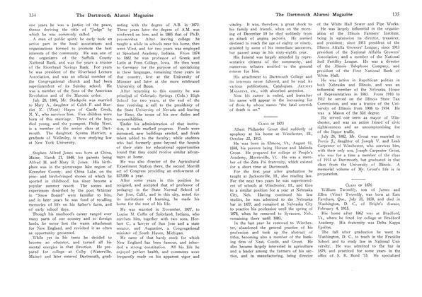 There is a certain sadness in the heart of your secretary this year because of the recording of the deaths of four of his old classmates, Ben Ailing, Gus Parry, Dike Varney and Crosby Tappan. In writing up their obituaries, I think of the happy days we all had together at Hanover and it is perhaps best to remember them all that way. Ben, Gus and Dike had long illnesses and, mayhap, death was a relief, but I shall greatly miss their names on my class list.