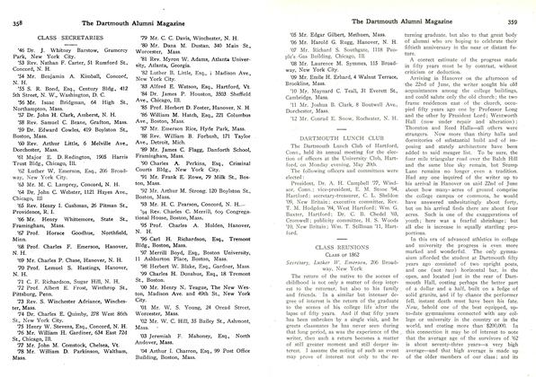 When the Club was originally formed in the early Thirties, there were less than a hundred alumni in the area. That number has more than trebled so that today more than 350 Dartmouth men live or work or both in the area embraced by the Club. To appeal to the varied interests of the group and to make it a potent force for Dartmouth in the area, the Club has been reorganized and strengthened. A new constitution, drawn up by a committee headed by Win Batchelder was adopted at the last meeting.