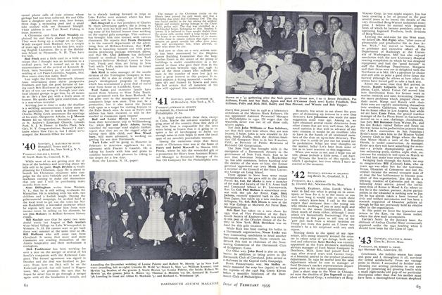 First of all let me give you a recap of what happened to '4l in the Alumni Fund drive ended last June. You know, of course, that the Fund had its most successful year in history with donations topping the $600,000 mark. However you may or may not know the relative standing of our class in the Green Derby among classes from 1938 through 1946. We had 345 members of the class contribute and in dollars we reached about $5,300 or approximately 67% of the class quota of $7,870. Our combined rating left us sixth out of the nine classes mentioned with '43, '44 and '46 behind us. A record was established this year when 34 classes exceeded their assigned objectives. We did not join that select circle but neverthless we made a commendable showing. And Bud Martin did an excellent job in his first year as class agent. Well, now I ditch all my records on the 1952 Fund drive and wait till next year.