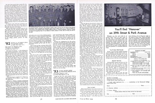As for weddings there's only one which I can report on accurately as of this writing. Roy Megargel and Kate Gray were married December 5 at Greenwich, Conn., and among those serving as ushers was Fred Stahl. JimFraser assumed the pleasant duties of best man. Kate is also a '53 graduate of Skidmore. They are living at Camp Lejuene while Roy completes his tour as a lieutenant in the Marine Corps. I take it back; there's one more, Al Cohen and Joan Fields were married on November 26 in New York. Al left the Class before graduation to attend Columbia and is now at the Law School there. There are several other weddings which took place this past December, but will save those for the next issue, when I hope I will have more complete details.