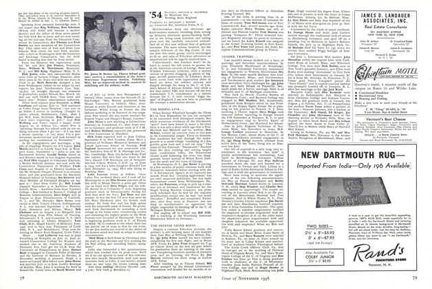 Ron Dougherty and wife Carole checked in at the Tyndall AFB in Florida so Ron can learn the "fine art" (not in the Dartmouth sense) of ground controlled interception. Hitting back and forth across the Isthmus is FredPage with the Army Quartermasters in the Canal Zone. John Gillespie is at Maintenance School at Chanute AFB, Ill.