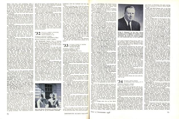 Important news this month is that our new Class Agent is Harry B. Gilmore Jr. We are lucky to have such an able man step into the boots of George Copp. The Executive Committee met and prayed fervently that Harry would accept. Silver-tongued Bill Scherman was his most persuasive self, and so once again we have ourselves an agent of whom we can be exceedingly proud. The rest is up to the sub-agents and you, the contributors. Harry wrote me to say he was bursting with ideas and he will have more to say after the Hanover Clinic for Class Agents on January 13. A thumb-nail sketch of our new officer reveals that after graduating from Tuck School in 1935, he worked at the Bank of New York along with Dave Hedges and Walt Blood. He married Prudence Anne Dawes in 1941 and their son Anthony is now 13 years old. He is presently the secretary-treasurer of the New Hampshire Fire Insurance Company and resides in Manchester, N. H.
