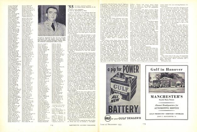 Schuy Huntoon sent Christmas greetings from Germany where he's run into several Dartmouths, vintage '55, Earl Fain and Bill Cassell (working in sports department of an overseas weekly - now a civilian) and Tom Connor in Munich.