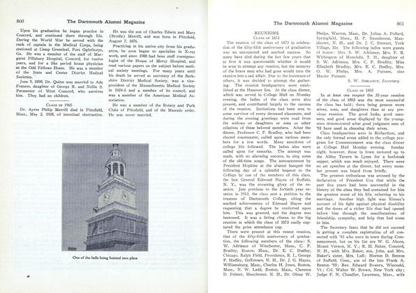 Several of the boys wrote that they were sorry to miss the dinner but couldn't make it. As usual Harvey supplied those present with a white carnation from his greenhouses.
