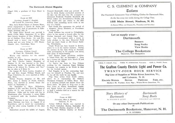 Bill Lionett, who was voted "busiest" man in our class in our senior year, keeps up the same pace. He reports from Worcester, Mass., that he is currently "Wage Administrator of Norton Company, world's largest manufacturer of abrasive products; Treasurer, Wachusett Regional School District; writer of a weekly editorial for local paper; and instructor in Worcester Junior College...."