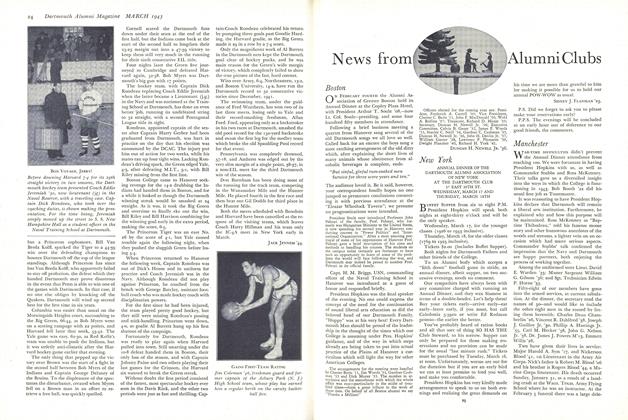 On the political front the Republican County Chairman from Orange County, N. J., announced recently that Bill Blanchard of New Vernon had been appointed chairman for the $100 dinner held in February in Newark, in honor of 21 County Republican chairmen. Bill has the task of raising funds to offset a substantial deficit incurred in the last gubernatorial campaign. And in Wayland, Mass., we find Rog Ela contesting for the office of Moderator. We can't report at this time how he made out. With the apparent rise of Hawaii to status of statehood, we must not fail to call attention to Frank McLaughlin's lobbying for the project. Probably many of you received Frank's urgent call for assistance in getting your own Senators and Congressmen lined up.