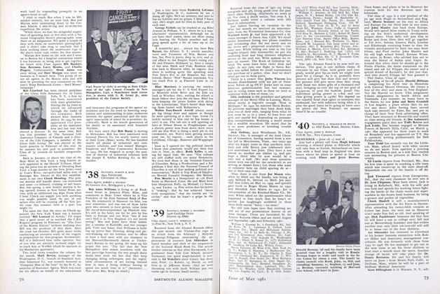 Comes the following appeal from Bob Stearns: "I would appreciate it very much if you would mention something about the 1960 Alumni Fund in the next ALUMNI MAGAZINE. I am sending out thirty letters to prospective agents. From this number, I expect to get twenty workers. There should not be too much work for each man with this number. If anyone in the Class wishes to volunteer, please get in touch with me. In any event, I hope everyone will support the drive."