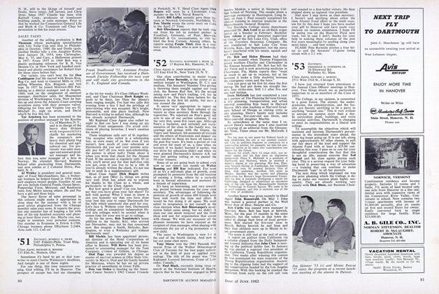 George Grosshans, president of the Dartmouth Club of Toledo, was promoted in January to executive position analyst of Owens-Illinois. The job involves evaluating top management positions. In February Ray Hinds was named administrative assistant to the nuclear products manager of M. and C. Nuclear, Inc. Tom Dudley formally announced the opening of his law practice in Kittery, Me., in April. Len and Sally Hedberg live in California where Len is a district sales manager for Pacific Telephone Company.