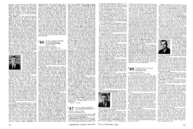 Bob Holmes has been named manager of the IBM branch office in Worcester, Mass. He's been an instructor in the customer executive program at Poughkeepsie, N. Y. Doug Corderman is now with Dresser Electronics in Houston, Texas, as manager of government accounting. He reports that his fourth child, second son, John, was born August 2, 1960. Newsletter editor ConnieCarstens is now in his new house, 6 Wellington Road, East Brunswick, N. J., and will be looking for your mail there.