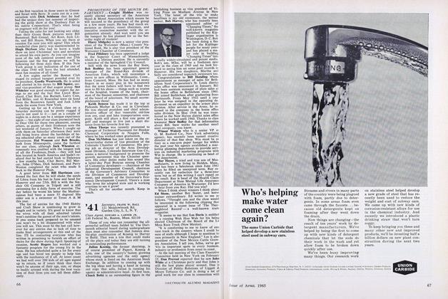 Dick Hill appointed to special advisory committee on comprehensive planning of the Boston Metropolitan Area Planning Council. Bob Chisholm is executive vice president of Carbon Limestone Co. in Youngstown, Ohio. Lloyd Fishman of Standard Overall Dry Cleaning Co., Inc., Manchester, N. H. was elected to a second term as treasurer of the Institute of Industrial Launderers, at a San Francisco Convention. The Institute represents a $400 million industry, providing work uniforms, dust control systems, shop towels and other services on a rental basis.