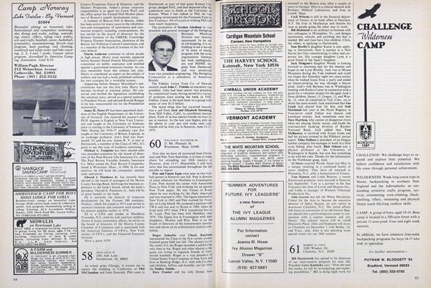 Hearing from former roommates is always a pleasure, so you can imagine my double joy to hear from two of mine within a few days of each other recently. Luckily we have kept in touch these last 27 years so it wasn't a matter of the lost is found, or even a sudden remembrance of a freshman year debt, but even after a couple of years of only Christmas cards it is good to gauge the changes and catch up with new details. One such letter, from Bill Duncan, chronicles the busy life he and Lois lead in Deerfield, Ill., from whence he trains in daily to the Chicago Loop and Pickands Mather & Company for whom he has worked since graduation. Having three school-age daughters was the big incentive for going onto the local school board a year and a half ago. Bill finds this extracurricular job very interesting but demanding, as I'm sure all of you who have so served can attest.