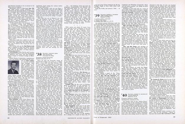 There are eleven sons of our classmates in this year's freshman class. It sometimes gives you a jolt to meet these boys on the campus, because you can so easily see their old man of 31 years ago on the same spot. The classmates who now have an interest in the Class of 1971 are Ken Elliott, Sox Freeman, Russ Hanchette, Dick Mather, Jack Moody, Sid Phillips, Charlie Pinderhughes, Earle Reingold, Dick Seidman, Bud Swenson, and Ike Weed. Hope to see you all here in February for Freshman Father's weekend.
