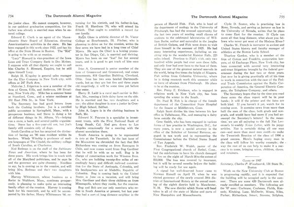 As the new class officers, elected at our 35th reunion, take over their duties, I am sure everyone wishes to express his thanks for the excellent job performed by the previous administration. Fortunately we will still have available to us the valuable knowledge of Wes Beattie and Jud Pierson as they change hats - Wes from president to class agent and Jud from secretary to bequest chairman. We shall miss Ed Knapp and Wood Foster but we do thank them for their superior work. George Farrand and Bob Fox will continue in their respective positions.