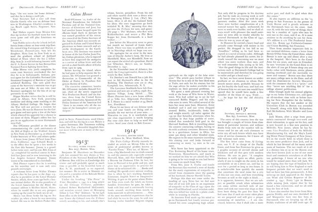 Thank you, Cliff Daniels, for your report and for submitting it promptly. Our entire class owes you gratitude for carrying on the 1918 POWWOW. Your account of this, the latest, the class might have had earlier via the April "Roar," but when I offered it to the Binghams, I was told that those far travellers had writ their April copy, sent it to Crosby, and planned to head for California ere April began. As a down-east expression puts it, "They've got 'go' tied to 'em."