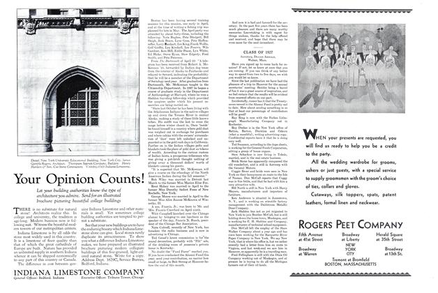 A late spring wedding which didn't make these pages then was that of John Fletcher and Miss Joan Segur in Bryn Mawr, Pa. My last report on John (which was three years ago) had him in the Navy — all we know now is a Washington, D. C., address.