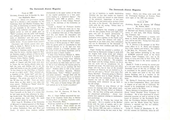 Os Skinner '28 dropped me a note on John King who is still teaching English at Lawrenceville School after 11 years and also coaching soccer and aiding the admissions office.