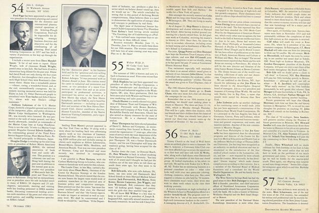 Last month I wrote my last official Alumni Magazine column as outgoing secretary of the class. However, since the new class secretary, John Gillespie, also chaired the class reunion, it seemed unfair to turn the column over to him without first providing an unbiased view of the terrific job done by him and his committee - Pete Barker and Dick Page. If you were there, you know what a great four days were provided for the whole class through the efforts of this outstanding trio. Their administration was surpassed only by their creativity, which was surpassed only by their efficiency. Everything went so smoothly, you might have thought things had been directed by a professional group, rather than three amateurs. I don't think there are enough words in our collective vocabulary to thank John, Dick, and Pete for the absolutely super weekend.