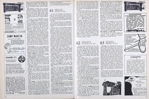 The Greg Cooke family of Gladwyne, Pa., added a son to its roster when Joshua Cooke was born on Thanksgiving. Al Davies reported from New York that "life is super" and "business excellent." His real estate management company is currently at work on a consulting project for Co-op City, the largest complex of residential apartment buildings in New York (or the world, for that matter), with 55,000 people living in 15,300 apartments. For various reasons, the natives have been restless there of late, suffering pangs of anomie, or whatever, and Al is apparently trying to get to the bottom of the problem. Al was also up at Lake Placid, where he was head of operations for the ceremonies and awards division. (No, he had nothing to do with the buses.) Sam Cabot says he thought "you'd never catch me going to Harvard," but nonetheless he will be attending a small-company management program there this winter. Sam, as loyal readers of this column know, is president of the company that bears his name, a family corporation that has made quality stains, varnishes, and related products for centuries.