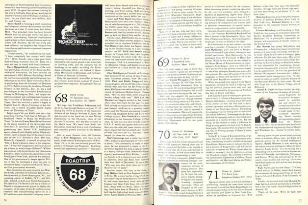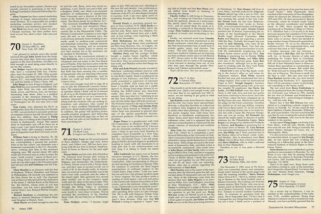 This summer I heard from Bob Baird, who is now a first vice president at Dean Witter in La Jolla, Calif., specializing in commodities trading. He and Gayle are the parents of two girls, and Bob also notes that they have two female dogs. So Baird is still surrounded by females. Some things never change. He also ran his fastest half-marathon in a time of 74:40. Not bad for an old you-know-what. Jim Gott shalk is trading options in the Chicago market, and at Ralston, Chris Car stensen is reportedly moving smoothly up that proverbial corporate ladder we hear so much about.
