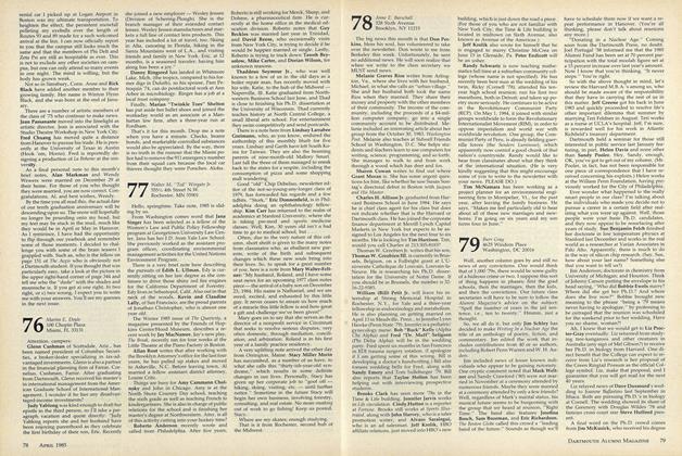 Whew, Fred, we are talkin' some letter there, pal. You definitely are in the running for the recently announced Best Correspondent award, to be presented at our 10th reunion. First prize is a pair of president Josh's old baseball socks, second prize is two pair, etc. If the rest of you drop me a note, you, too, can be considered for this prestigious award.
