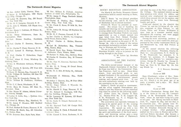 We receive word now and then from the substantial number of classmates who entered with us but did not go the whole course. Among those ex-'2sers whom we have recently heard from is William "Bruce" Davis, who reports from Pittsburgh, Pa. He finds that his recent pacemaker has revived him but he still needs some months to recoup. He still keeps his loyalty to the College and his class as do so many of the others who, for one reason or another, left us early.