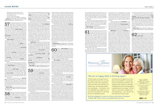 Howie Snyder sends best wishes for a grand 50th Reunion from his home in Forest Ranch, Calif. He regrets that he can't make it, even though he had planned to be on deck. His wife is not up to the trip, but he says he'll be thinking of all those who attend.