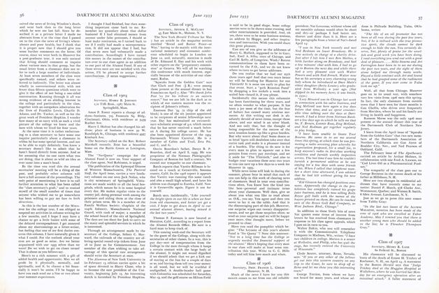 When you are reading this column there will be only a few weeks left to support this year's Alumni Fund, and, for those who began a collection of Dartmouth glasses etched with our class numerals, you have a chance to add to the collection or maybe begin a new one because of the offer being made by our head class agent, Irl Marshall. All it takes is a contribution of at least $110 or 10% more than you gave last year. I can attest to the fact that they are a handsome addition to my bar, and what a deal to help the College and win an award as well.