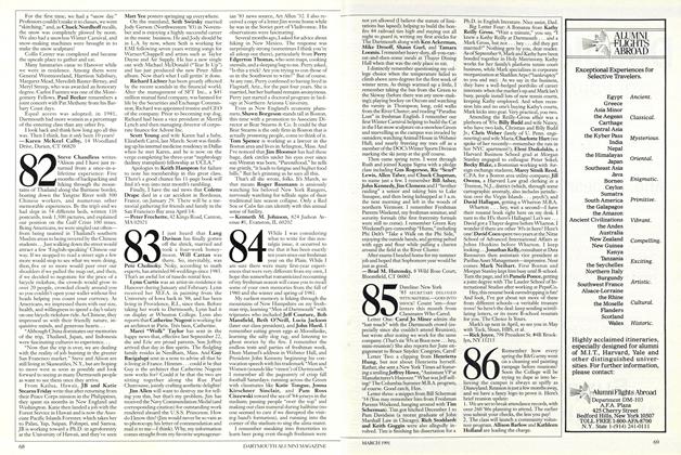 Lucy Cogswell, during her years collecting class dues, reported that some of the foregoing had specifically informed the College that they were not interested in farther communication. Nevertheless, I believe classmates and other readers of this column would much appreciate learning what happened to those 52, so I ask readers to send me any information they may have.