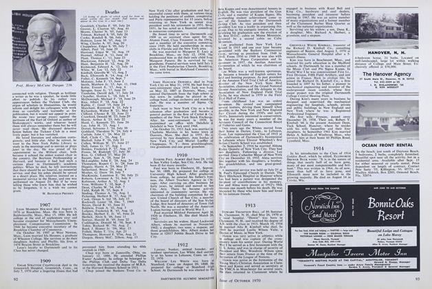 Edmund G. Dearborn died February 20 at the Masonic Home in Charlton, Mass. He was a Greek-Latin major at the College and a member of the track and cross-country teams. After serving with several different machinery manufacturers, in 1949 he joined Draper Corp. In 1974 he retired from the Draper Division of RockWell International as manager of communications. He had lived in HOpkinton Mass., since 1950, and served there on the board of selectmen, the board of assessors, and the council on aging, and was active in the Congregational Church and Masonic organizations.