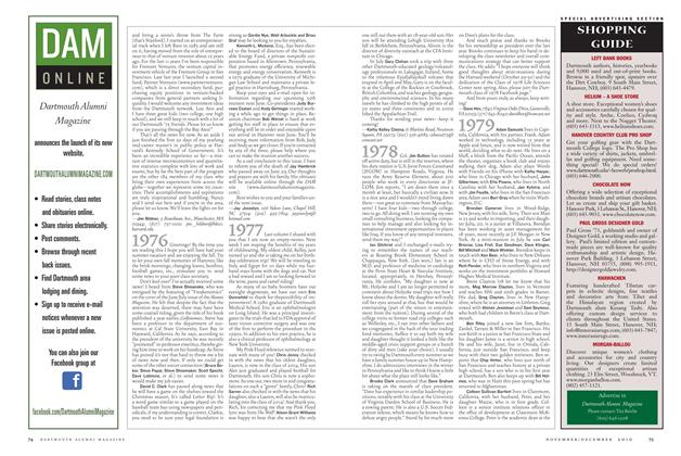 If you haven't already found it, try checking out our class Web site, www.alum.dartmouth.org/classes/76/class76.html. Webmaster Mark Friedman is doing a terrific job keeping things updated and interesting. Mark is keeping the site up to date with pictures and interesting articles/items by or about classmates. It helps take the sting out of the space constraints posed by the Alumni Magazine. One item that I'd like to recommend is Susan Stine Felter's holiday letter to family and friends. For those of us away from the metropolitan areas directly affected by the events of September II, it really helps put things in perspective.