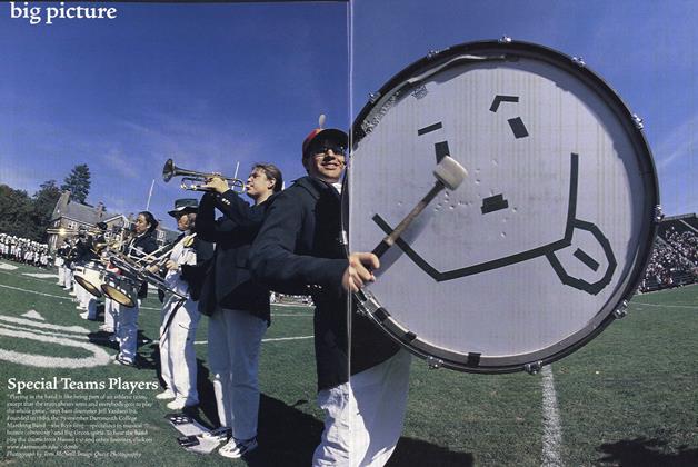 Navy pilot Scott "Junk" Bonz '89, who was named Commander Naval Air Forces 2003 Pacific Pilot of the Year, demonstrates his tactical expertise in a F/A-18 Hornet over the USS Nimitz near San Diego. The Vermont native was deployed to the Persian Gulf from March to November 2003, flying air support missions near Baghdad with the VFA-94 squadron known as the Mighty Shrikes. "I wouldn't say that it was frighten- ing or terrifying, or that the flying was particularly challenging," he says. "We were very well prepared for what we were doing, only with 200 percent more adrenaline." For more on Bonz go to page 78