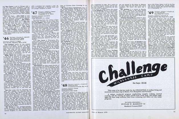 Kathryn (Harty) Ross sent along a huge e-mail with tons of news. Kathryn and husband Chuck Ross embarked on a road trip from Colorado through Northern California with their two sons, Ezra and Isaac. On their trip they stopped in Napa Valley to see Jon Ruel and Yasi Ayat and their two children, Reza and Mitra. Jon is a viticulturist at Trefethen Vineyards and Yasi is fully occupied with making jewelry and tending to the kids and some chickens! Kathryn visited with Josh Stein, who is also living in California and who has been married for a year to a Stanford Business School classmate. Kathryn and Chuck are living in Woodland Park, Colorado. Chuck has two jobs—one with a structural concrete company and the other with a start-up medical modeling and custom implant company. Kathryn is still teaching eighth grade, although she is contemplating a jump back into the role of student at some point soon. Finally, Hillary (Agnew) Cecil and Susan Warhover sent a two-page document to me with so much news that I'll have to save some for the next Class Notes. Hillary was married a fellow classmate from the Daniels School of Business at the University of Denver. Their wedding was well populated with Dartmouth alumni, including Susan Warhover, Aviva (Bender) Siegel, Janie Merkel, Erin Murphy, Amy (Reed) Morel, Joseph Morel, Laurie (Stucker) Halligan, Jamie Halligan, Alison Yobage, Kai (Singer) Falkenberg, Sarah McAlister '96 and Liz Teutsch '99. Since I'm bumping up against the word limit, I promise to resume Hillary and Susans news in the next Class Notes. Thanks for the news. Plan to go to reunion.